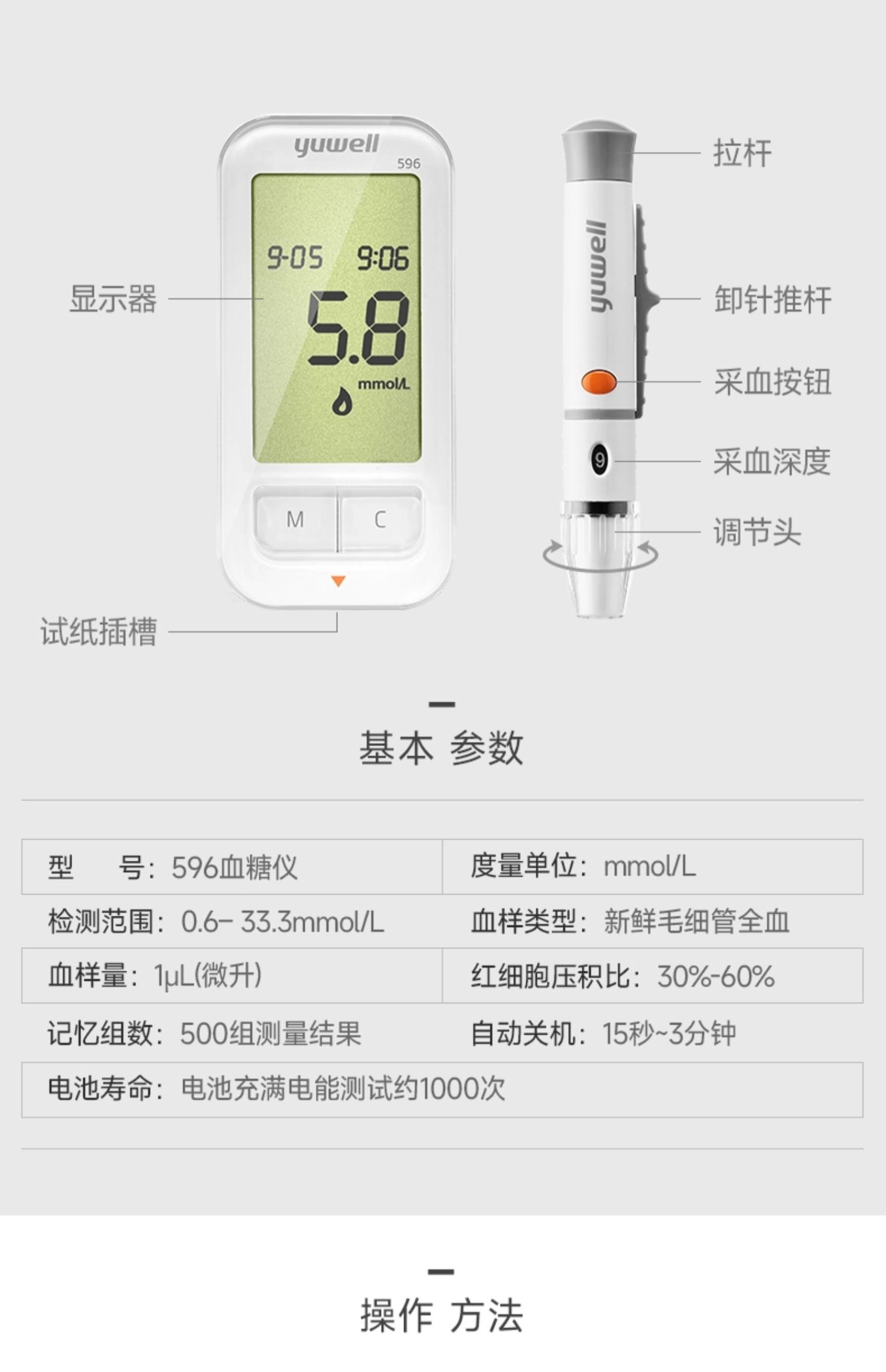 测量范围0.6mmol/L~33.3mmol/L